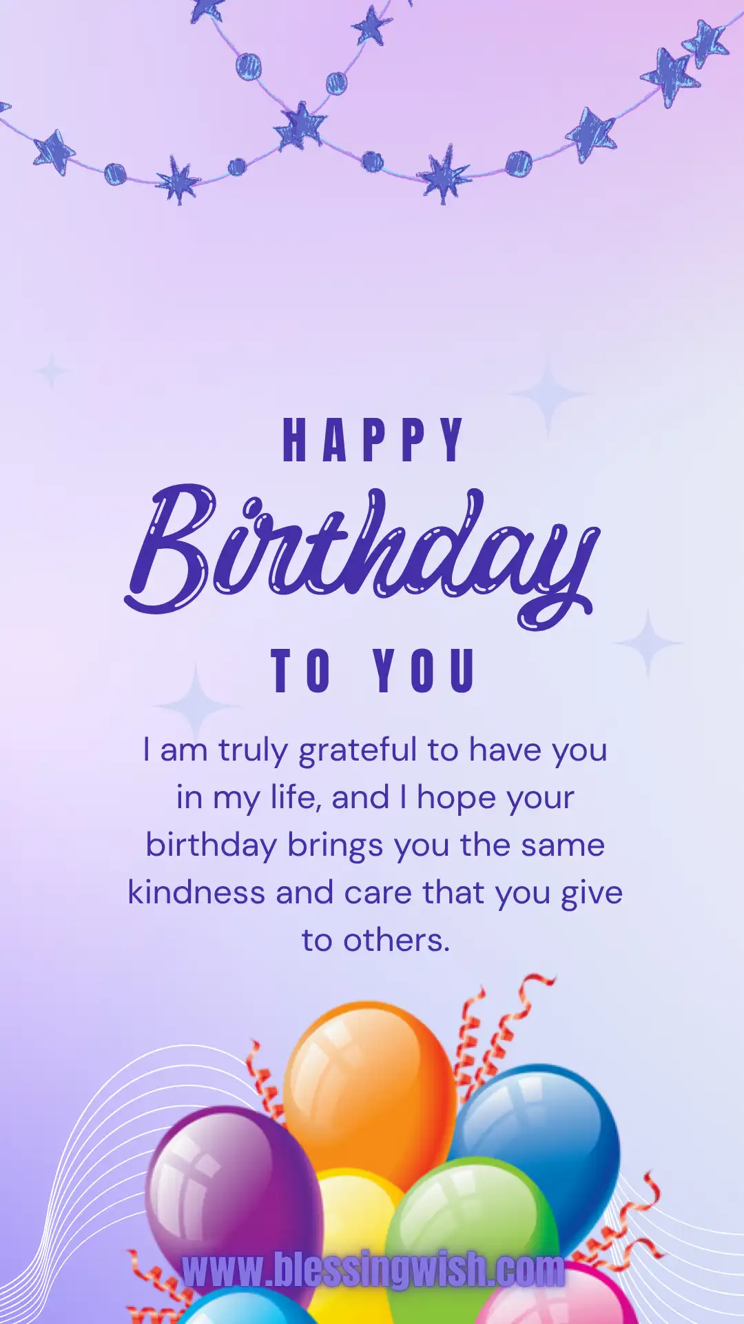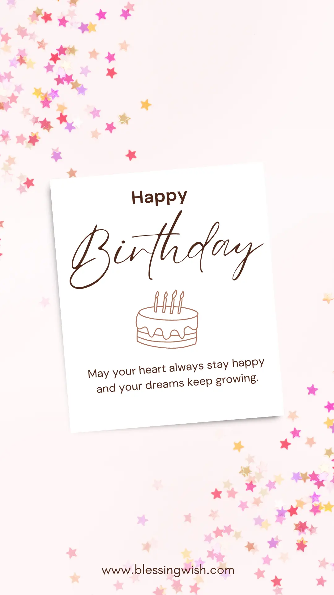 Keep it warm and sincere. You can combine a kind message with a blessing like: “Happy Birthday 🎉 May your life be filled with love, peace, and success, and may every day bring you closer to your dreams.”