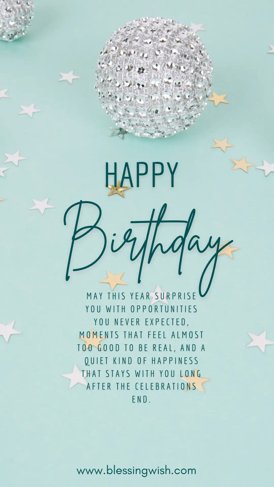- Happy Birthday 🎂 May this year surprise you with opportunities you never expected, moments that feel almost too good to be real, and a quiet kind of happiness that stays with you long after the celebrations end.