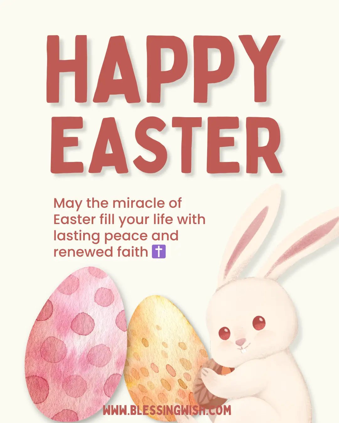 Example:“May God bless you with peace, joy, and renewed faith this Easter. Amen.”