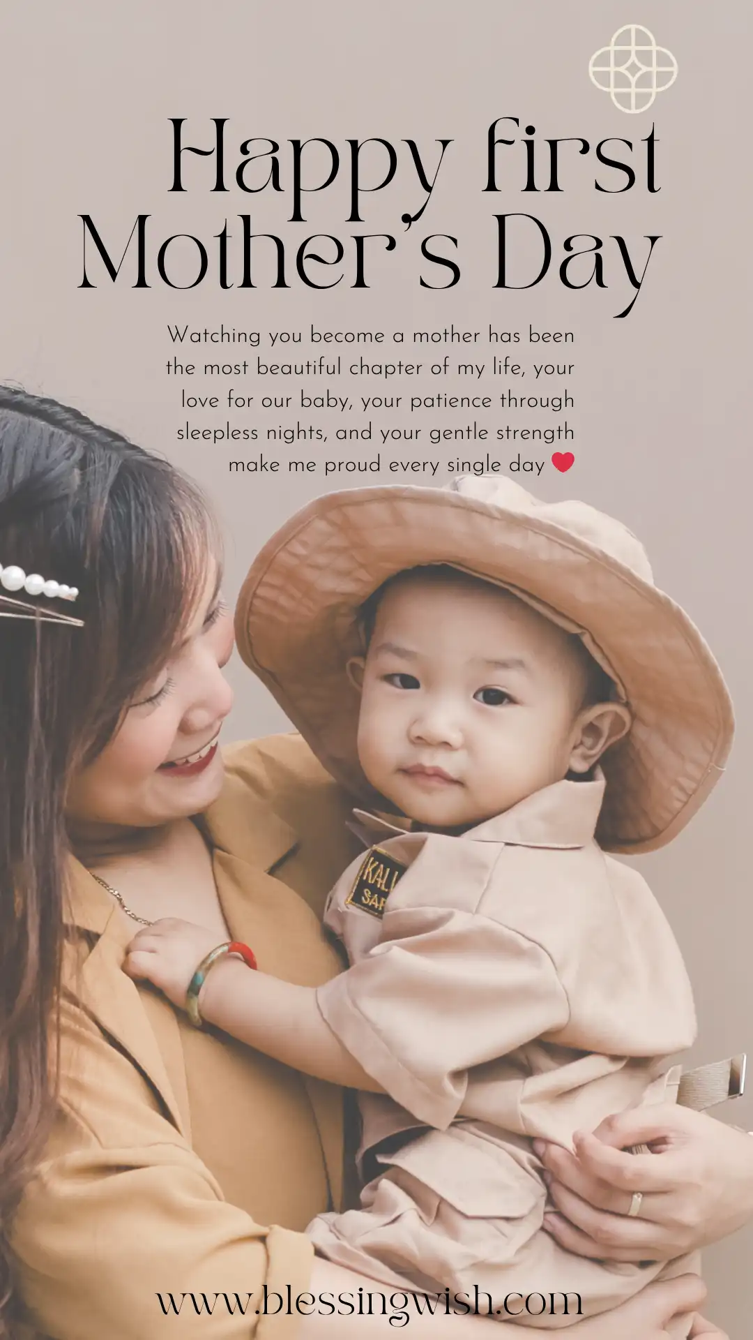 - Happy first Mother’s Day to the woman who turned our house into a home filled with warmth, laughter, and the sweetest little moments that I will always cherish