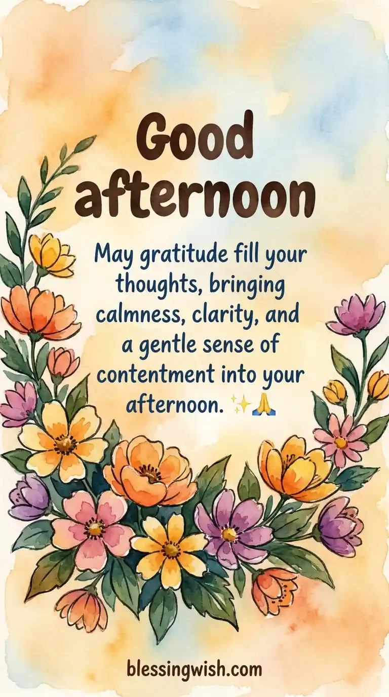 Whether you share these blessings with friends, family, or keep them for your own reflection, each message carries warmth, intention, and a sense of calm strength. Let your afternoon be guided by Faith, filled with Gratitude, and grounded in Peace. ☀️🙏