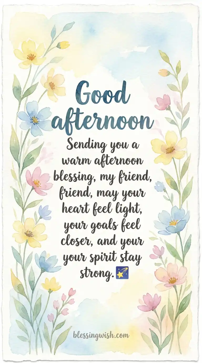 - Sending you a warm afternoon blessing, my friend, may your heart feel light, your goals feel closer, and your spirit stay strong.
