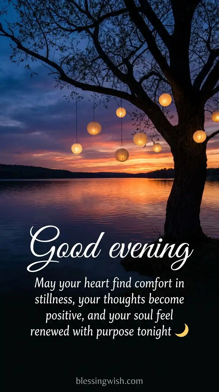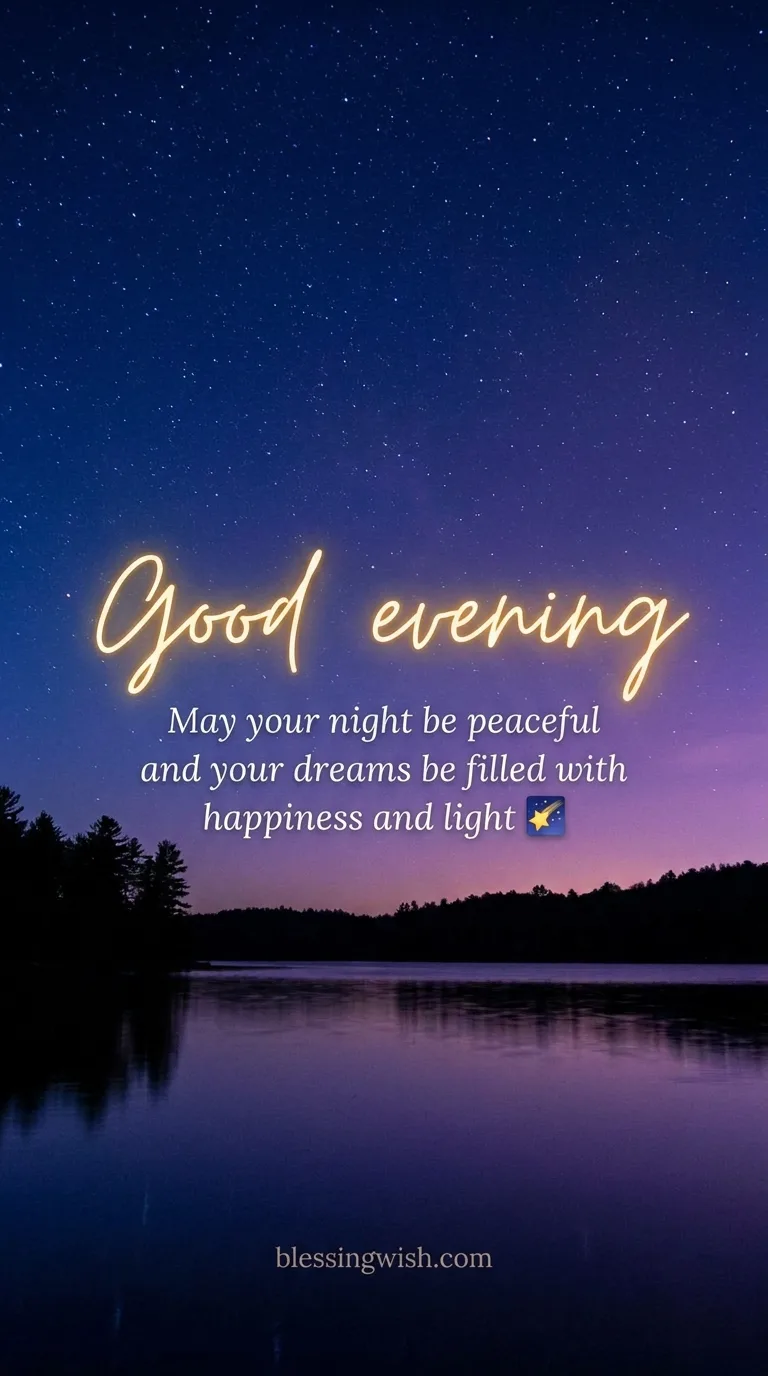 These peaceful evening wishes focus on relaxation, mindfulness, and helping you unwind after a long day with calm thoughts and soothing energy.