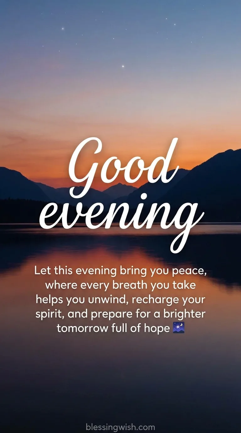 - Let this evening bring you peace, where every breath you take helps you unwind, recharge your spirit, and prepare for a brighter tomorrow full of hope 🌌