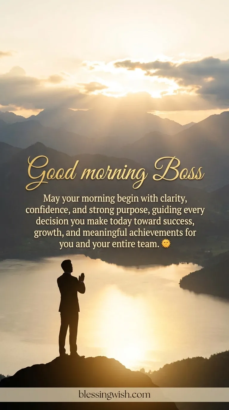 These long blessings help you express deeper respect and appreciation. They combine motivation, gratitude, and encouragement while wishing your boss success, clarity, and leadership strength throughout the day. 🌅