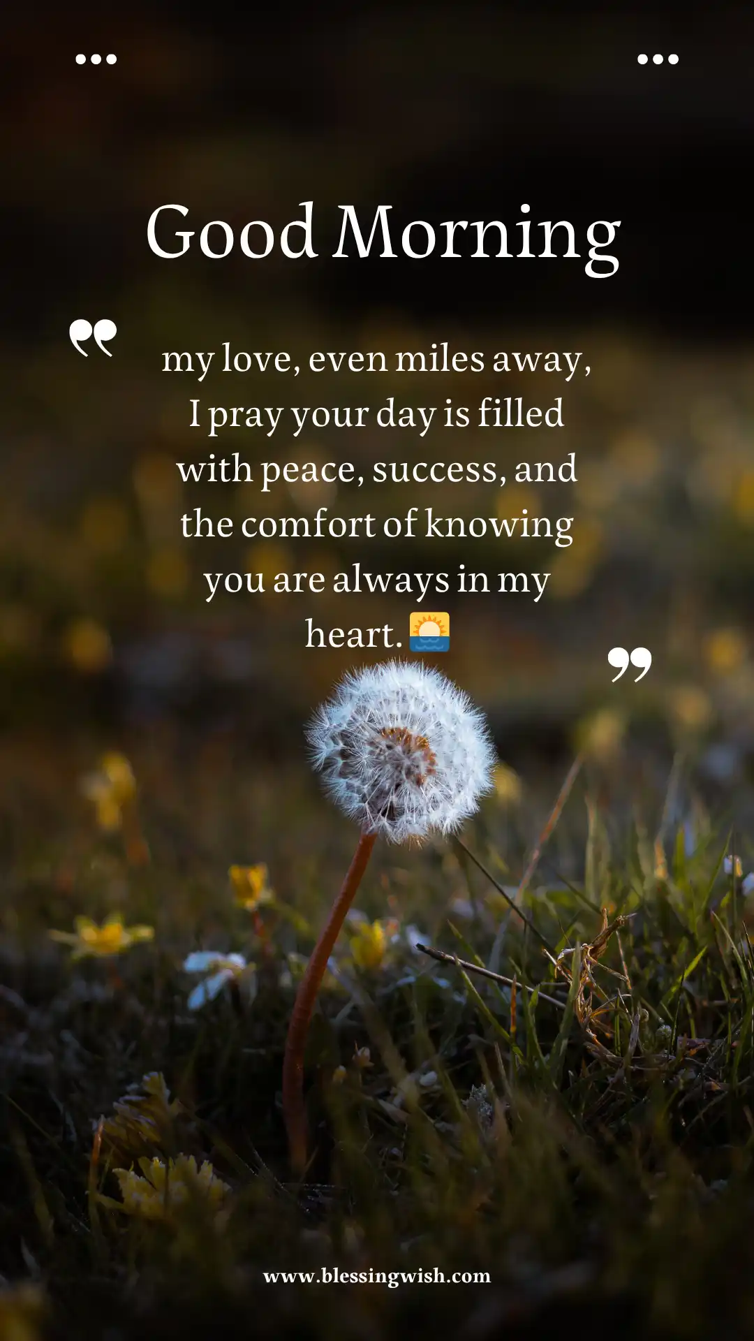 “Good morning, my love, even from afar, I pray your day is peaceful, successful, and filled with the comfort of knowing I am always with you.”