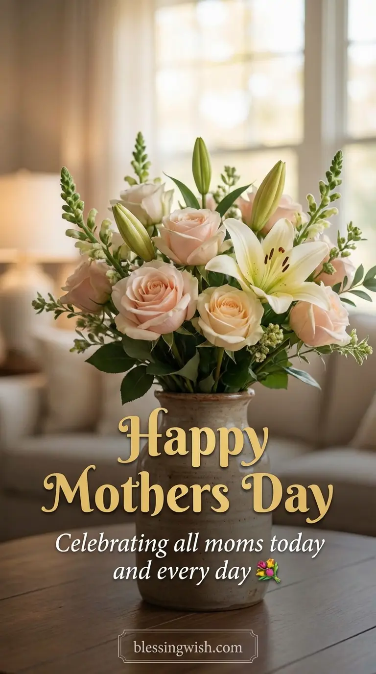 Short captions work best for engagement. Example: “Love you always, Mom 💐” or “Forever grateful.”