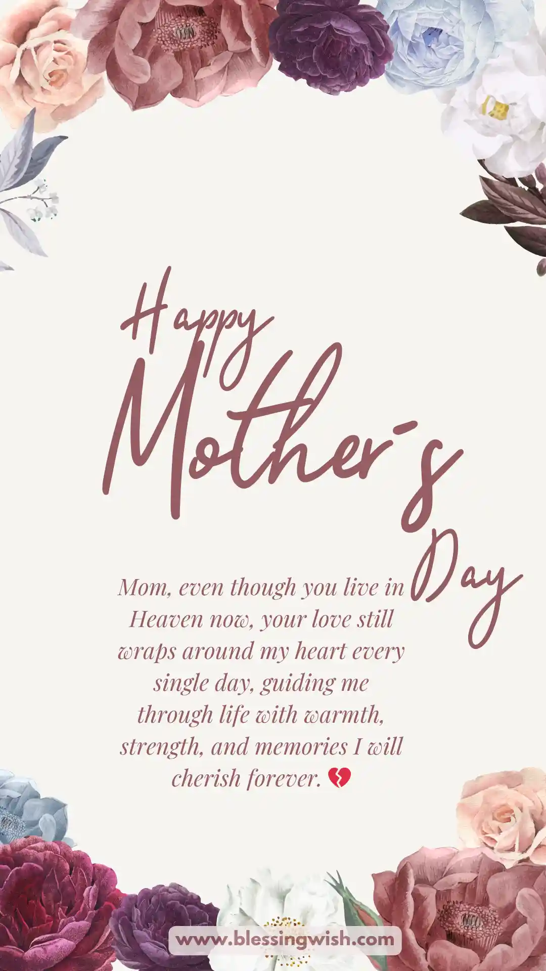 - Happy Mother’s Day in heaven mom, your love still lives in every heartbeat of mine. 💖
