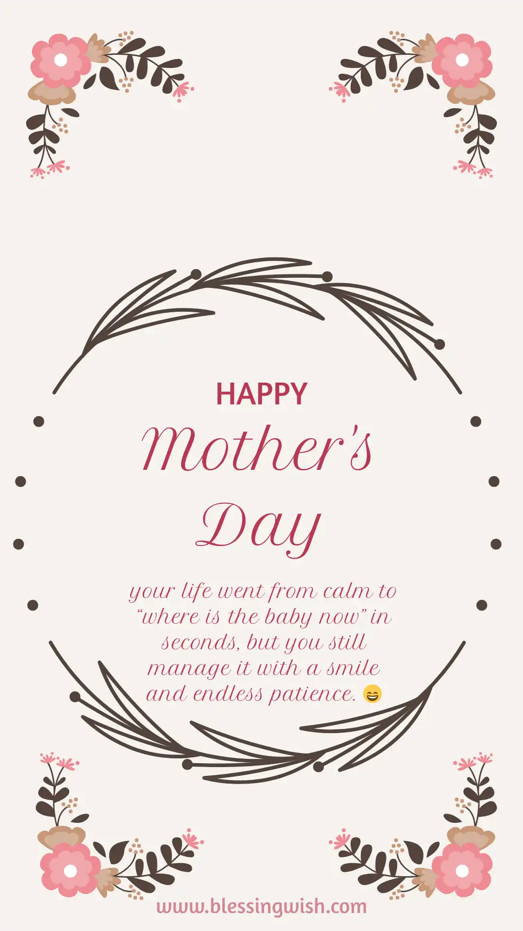 - Happy Mother’s Day, your life went from calm to “where is the baby now” in seconds, but you still manage it with a smile and endless patience. 😄