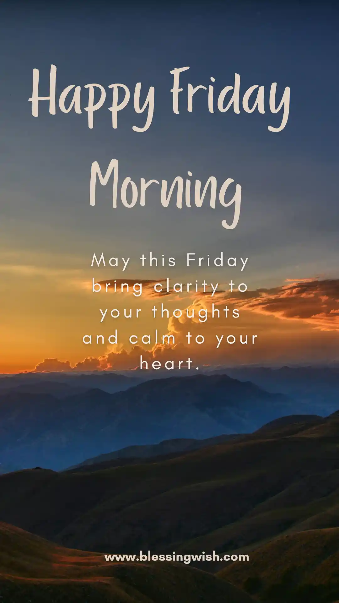 Beautiful Friday blessings focus on peace, joy, and calm thoughts, such as wishing someone a gentle, happy, and fulfilling day.