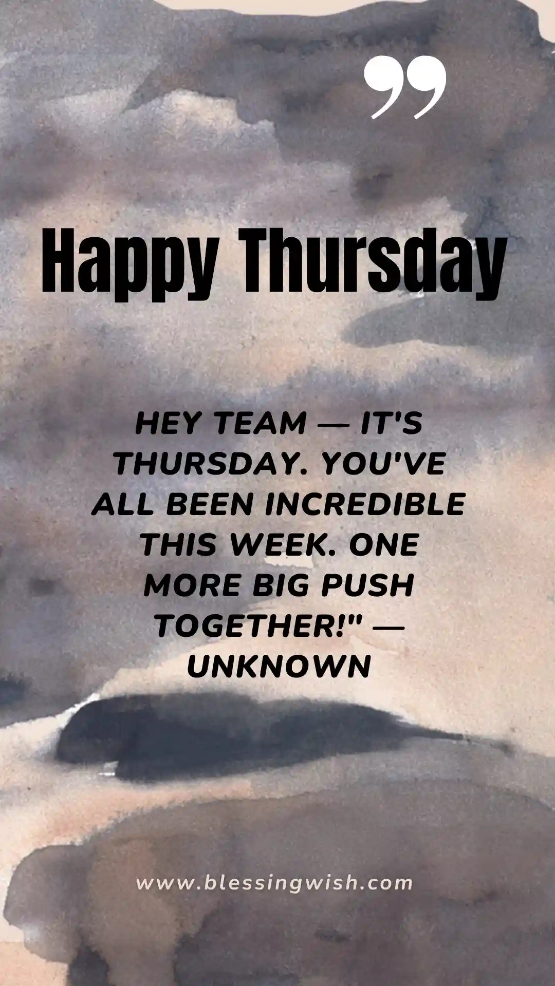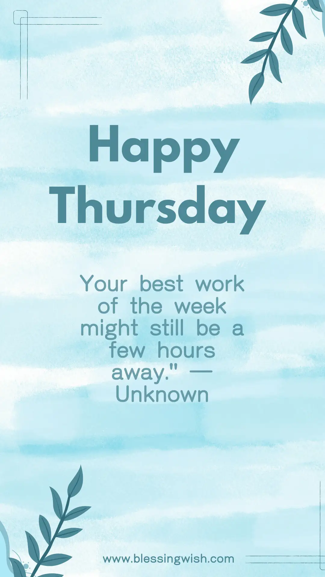 A warm “Happy Thursday — we’re almost there, let’s make it count!” goes a long way in the office. Whether it’s a team message or a personal affirmation, Thursday morning words that acknowledge effort while encouraging the final push always land well.