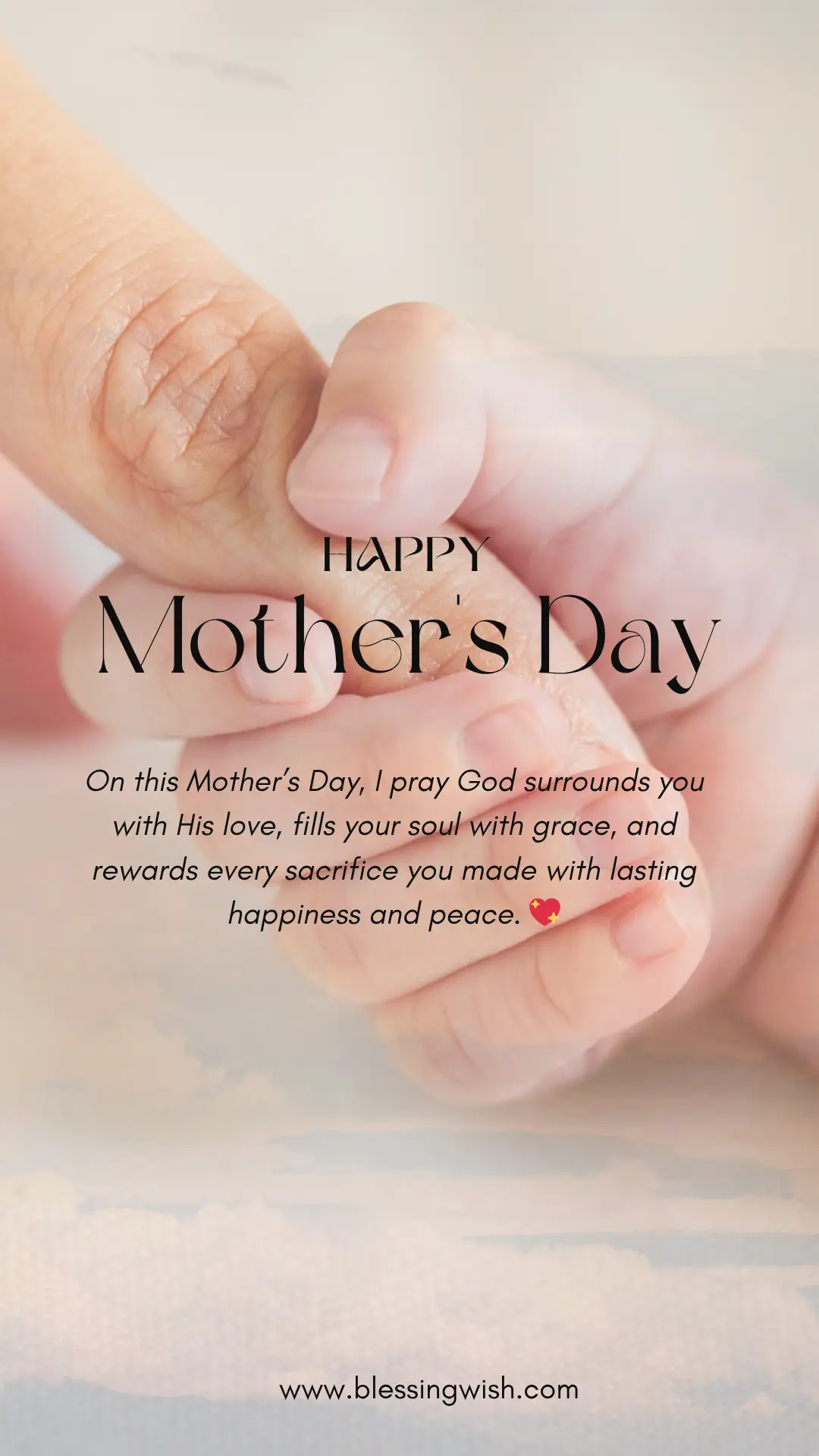- On this Mother’s Day, I pray God surrounds you with His love, fills your soul with grace, and rewards every sacrifice you made with lasting happiness and peace. 💖