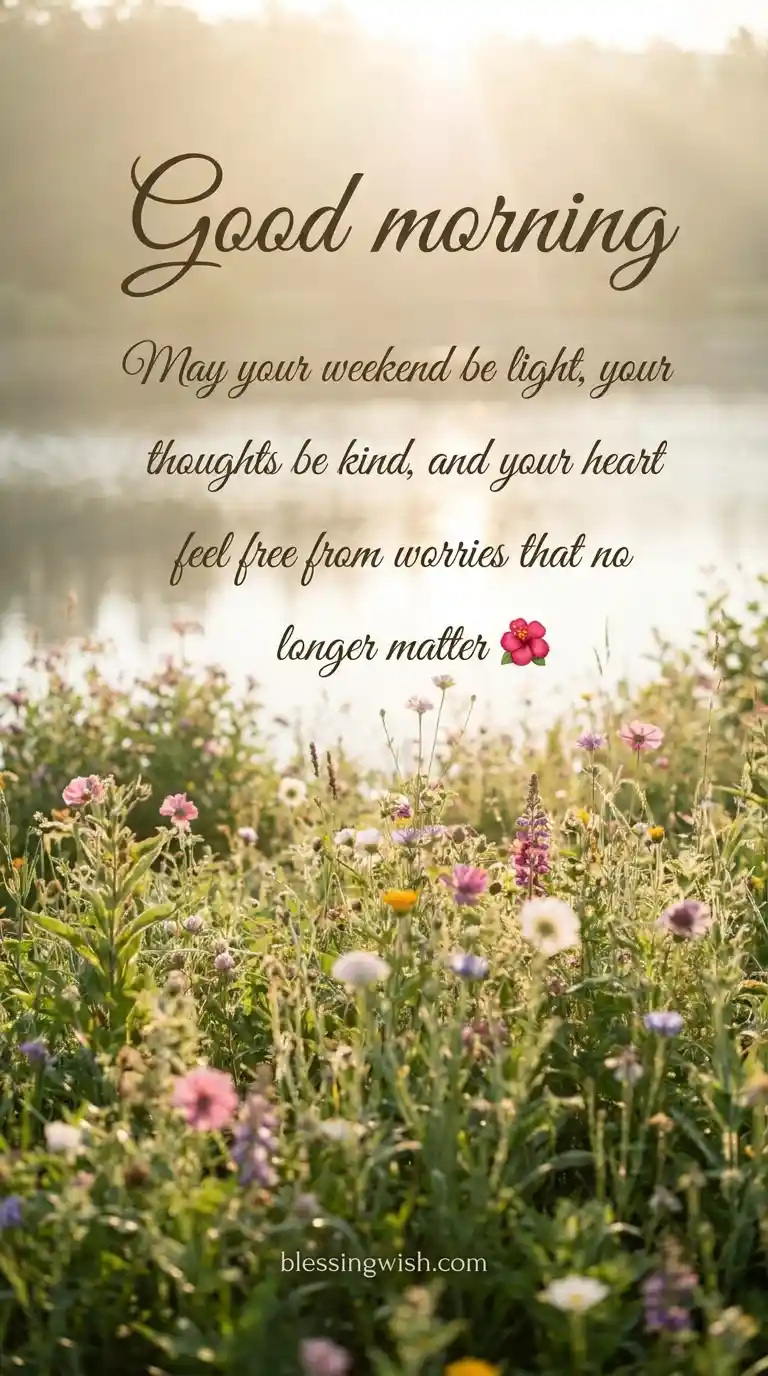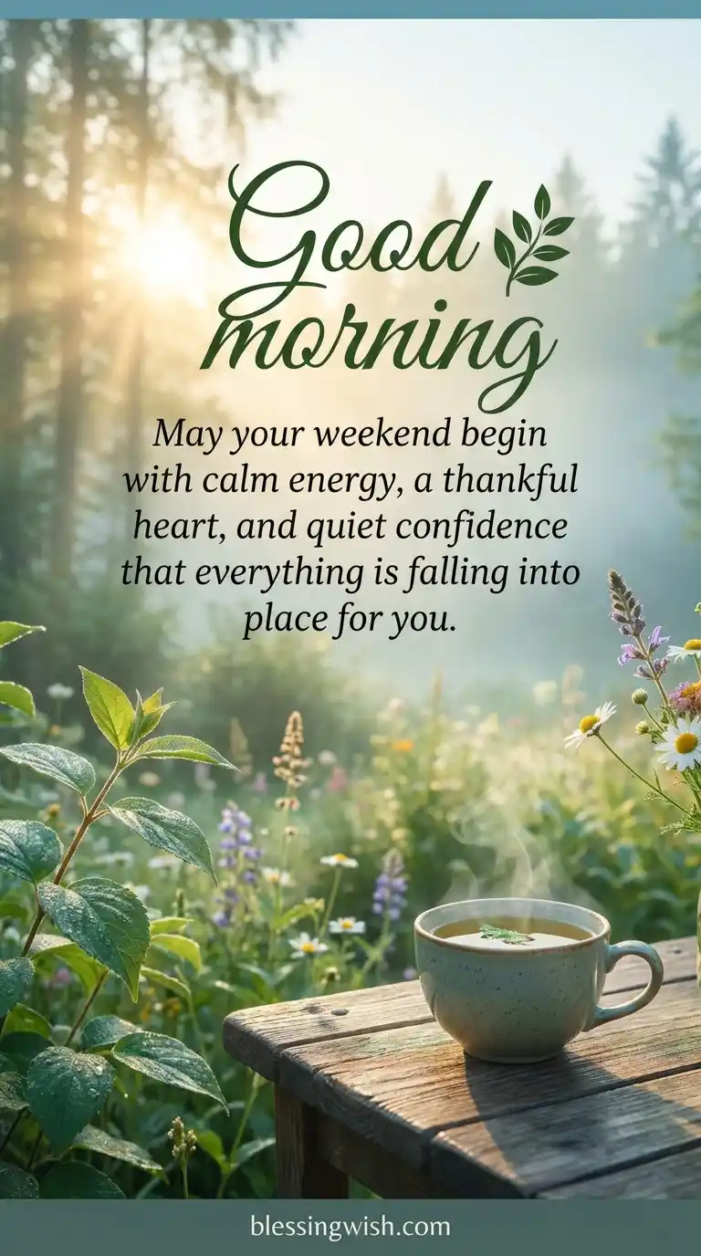 - 🌼 May your weekend begin with calm energy, a thankful heart, and quiet confidence that everything is falling into place for you.