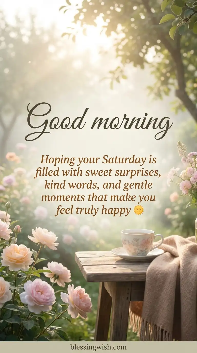 - Hoping your Saturday is filled with sweet surprises, kind words, and gentle moments that make you feel truly happy 🌞