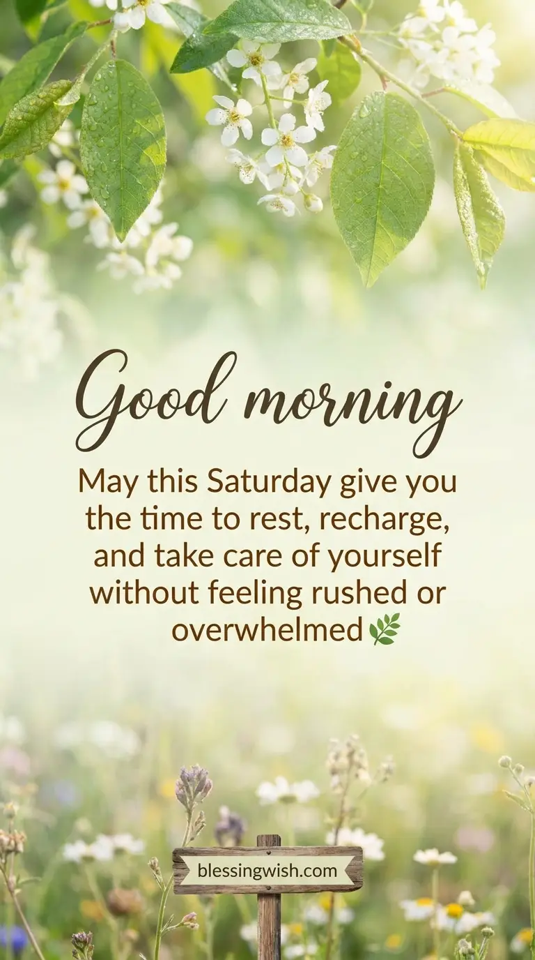 - May this Saturday give you the time to rest, recharge, and take care of yourself without feeling rushed or overwhelmed 🌿