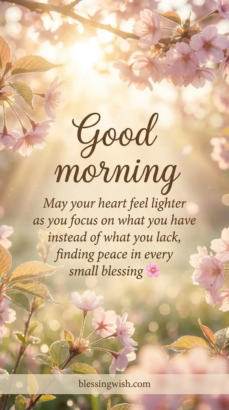 - May your heart feel lighter as you focus on what you have instead of what you lack, finding peace in every small blessing 🌸