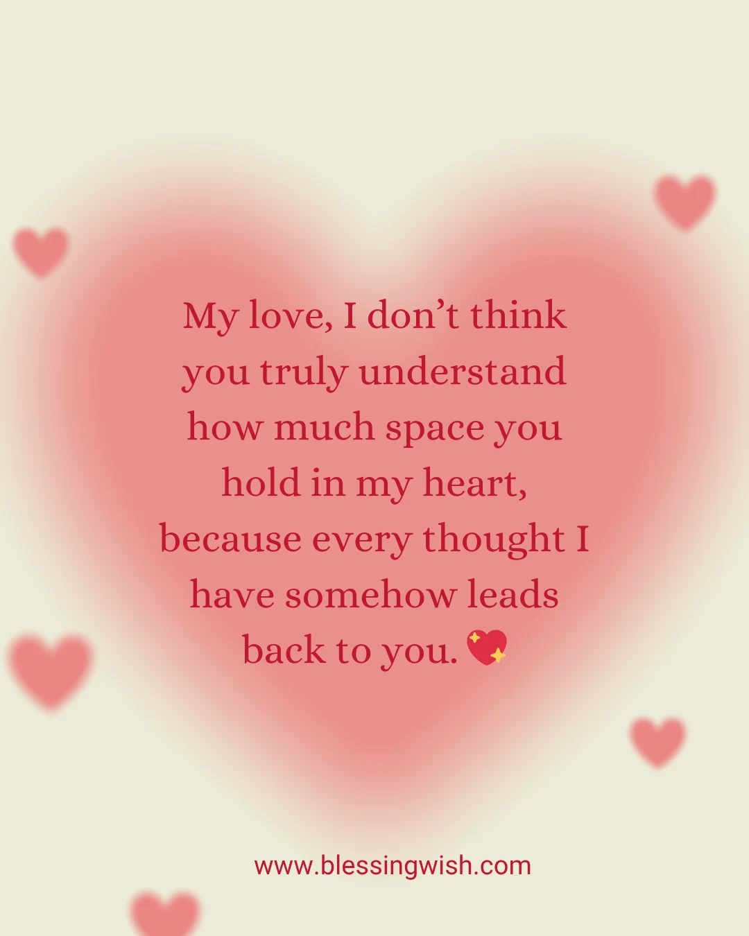 - My love, I don’t think you truly understand how much space you hold in my heart, because every thought I have somehow leads back to you. 💖