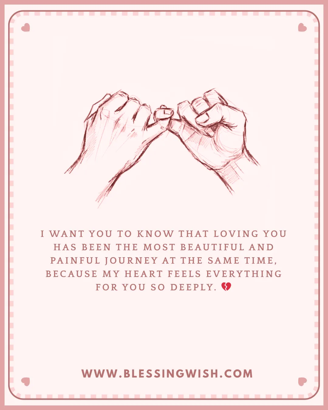 - I want you to know that loving you has been the most beautiful and painful journey at the same time, because my heart feels everything for you so deeply. 💔