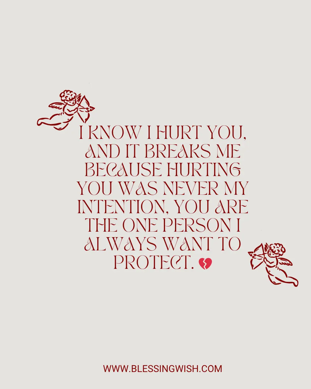 - I know I hurt you, and it breaks me because hurting you was never my intention, you are the one person I always want to protect. 💔