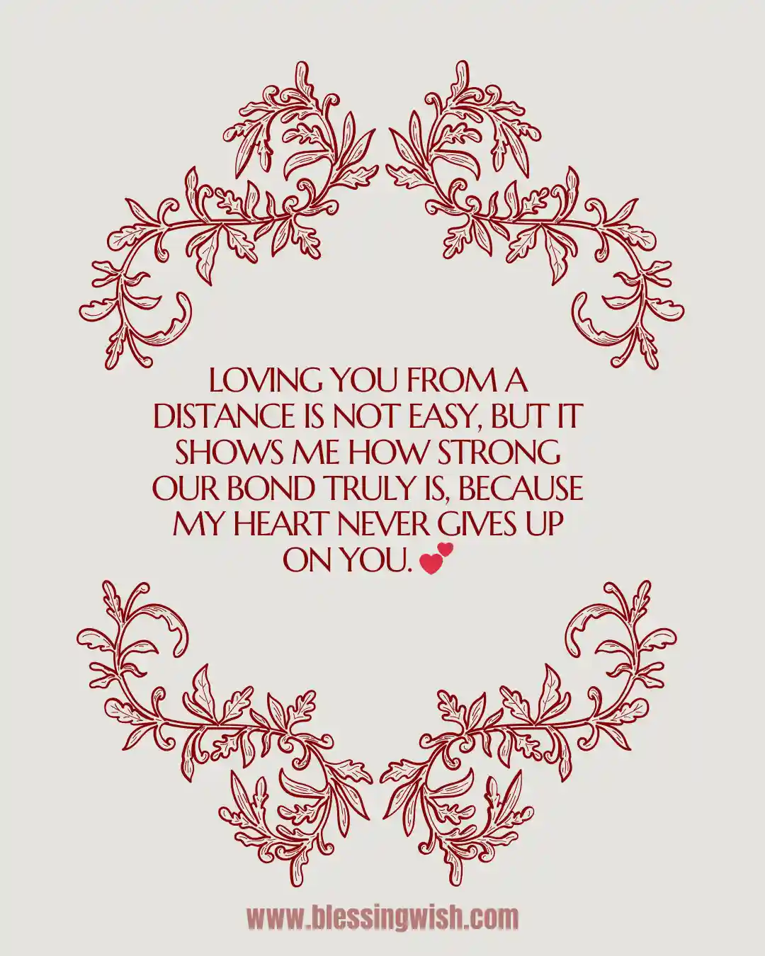 - Loving you from a distance is not easy, but it shows me how strong our bond truly is, because my heart never gives up on you. 💕