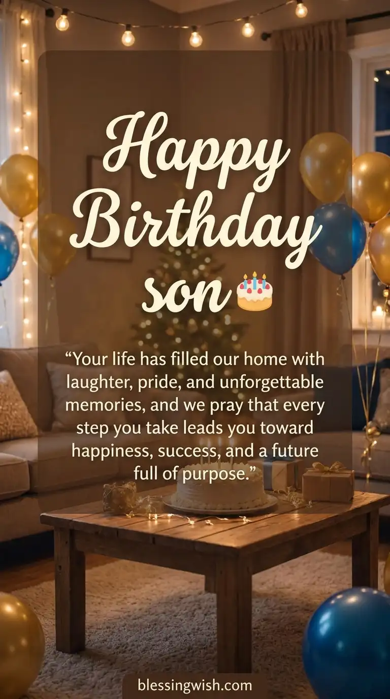 - Happy birthday, son 🎂 Your life has filled our home with laughter, pride, and unforgettable memories, and we pray that every step you take leads you toward happiness, success, and a future full of purpose.